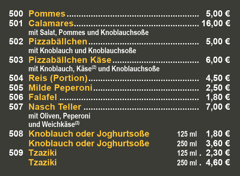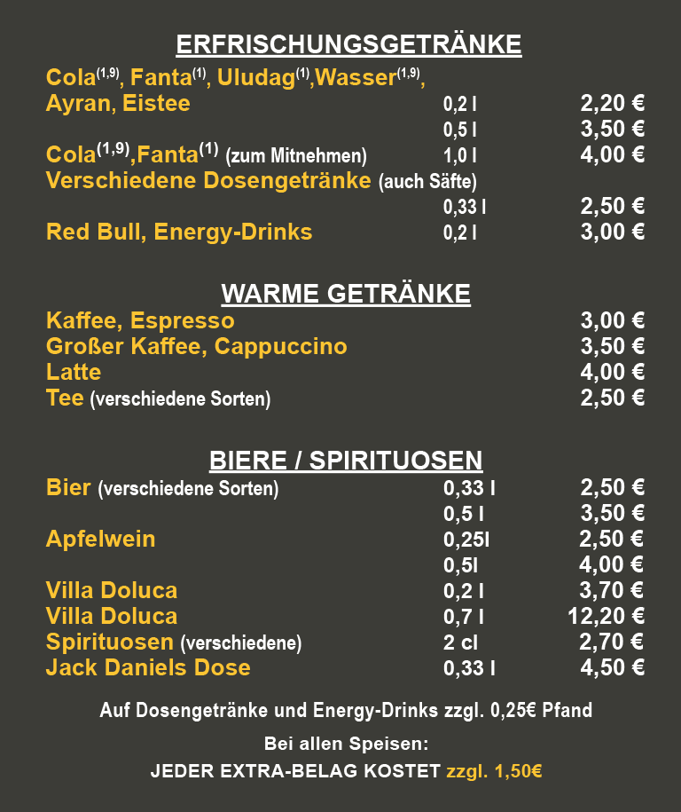 JEDER EXTRA-BELAG KOSTET zzgl. 1.50€